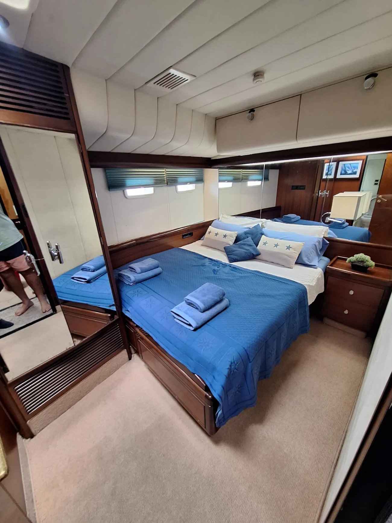 Refitted in 2019 and 2023, Wioleta has been meticulously maintained to the highest standards, featuring a sleek fiberglass hull in classic white, an aluminum mast, and a powerful Caterpillar 300 HP. Equipped with three generators (Onan 27 kW, Mase 9.5 kW, and Fisher Panda 9.5 kW), she ensures reliable power and autonomy for extended voyages.